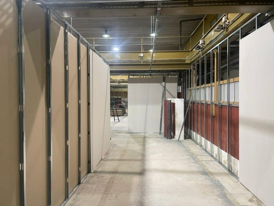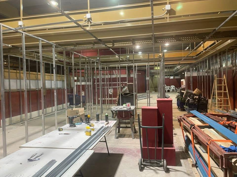 Los primeros pasos son los de empezar a transformar el edificio Francisco Martín Moreno (corrales de suelta) en una sala de exposición. Instalación de pladur, telas, cableado, electricidad y replanteo de plataformas es lo que nos ocupa en estas primeras semanas.